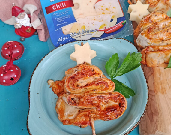 Dürfen auf keinem Weihnachtsbuffet fehlen: unsere Pizza-Bäumchen mit aromatischem Heinrichsthaler Elbländer. Hier gibt´s das Rezept.